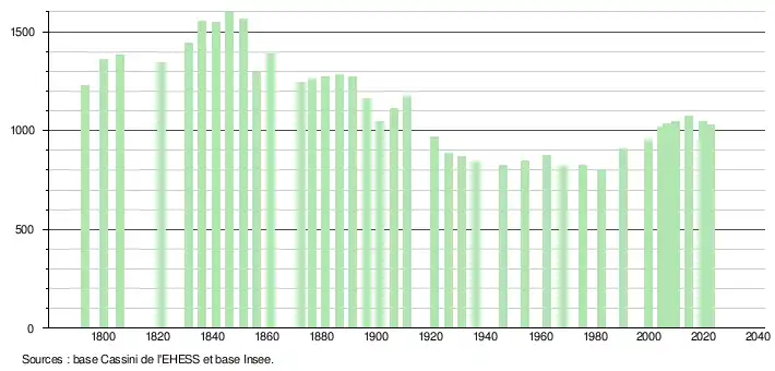 - ↑ Fiches Insee - Populations de référence de la commune pour les années 2006, 2007, 2008, 2009, 2010, 2011, 2012, 2013, 2014, 2015, 2016, 2017, 2018, 2019, 2020, 2021 et 2022.