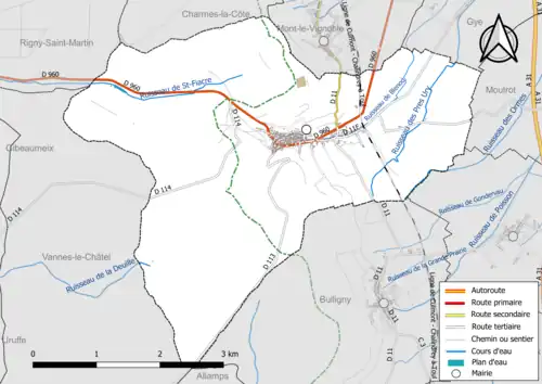 Les communes limitrophes sont Allamps, Bulligny, Charmes-la-Côte, Crézilles, Gye, Mont-le-Vignoble, Moutrot, Rigny-Saint-Martin et Vannes-le-Châtel.