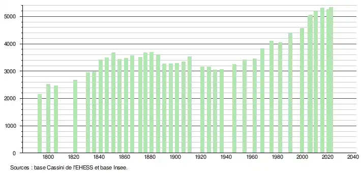 - ↑ Population municipale de référence en vigueur au 1er janvier 2025, millésimée 2022, définie dans les limites territoriales en vigueur au 1er janvier 2024, date de référence statistique : 1er janvier 2022.