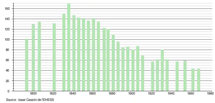 Jusqu'en 1969, la démographie de Blérancourdelle était :