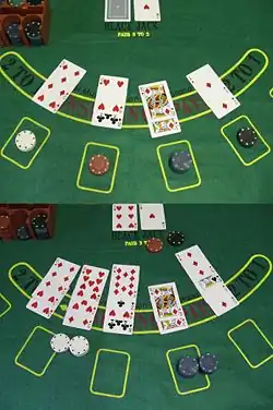 De manière générale, lors d'une séparation de deux cartes, il n'est pas possible d'obtenir un blackjack. Par exemple, un joueur qui sépare deux bûches, et qui obtient un as sur une des deux mains, se verra compter 21 points et non un blackjack. Ainsi, si le croupier a un blackjack, le joueur perd sa mise.