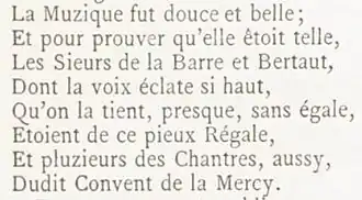- Et si l’on compare une excellente basse, comme celle du sieur Moulinier, avec un excellent dessus, comme celuy du sieur Bertaut, tous deux chantres de la musique du roi...