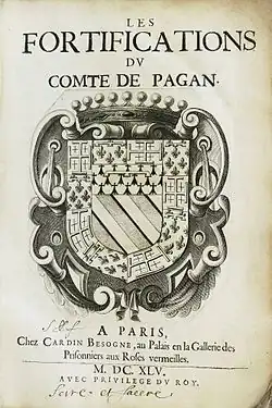 - 1645 : Première édition du Traité des fortifications, Les fortifications du comte de Pagan, nouvelle édition, 1689 Texte Gallica