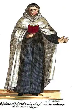 Religieux de l'ordre des Serviteurs de la Sainte Vierge avec le manteau blanc qui donna le surnom à cet ordre mendiant.