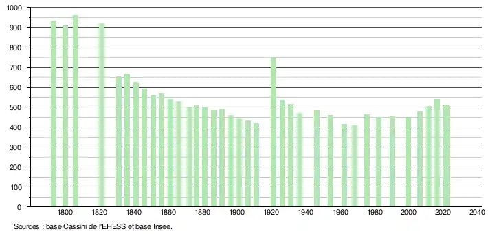 - ↑ Population municipale de référence en vigueur au 1er janvier 2025, millésimée 2022, définie dans les limites territoriales en vigueur au 1er janvier 2024, date de référence statistique : 1er janvier 2022.