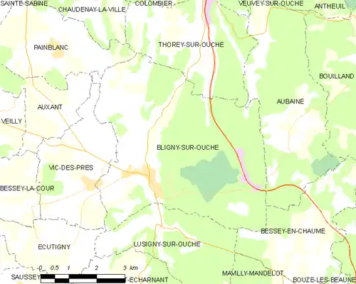 - ↑ « Orthodromie entre Bligny-sur-Ouche et Bessey-en-Chaume », sur fr.distance.to (consulté le ).