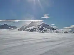 Le blizzard de montagne, caractéristique de régions fortement venteuses en montagne, est un sous-ensemble du précédent dû à l'action soutenue de vents violents qui transportent sans discontinuer, parfois pendant des dizaines de jours, la neige fraîche ou les lamelles de glace, reprises aux surfaces environnantes des sommets[6]. À cause de l'effet refroidissant intense des masses d'air en mouvement (refroidissement éolien), ce blizzard de surface montagnard ou glaciaire cause en quelques heures la mort des animaux et des humains non protégés et souvent ensevelis sous une grande couche de neige ou de glace, très résistante et quasi bétonnée.