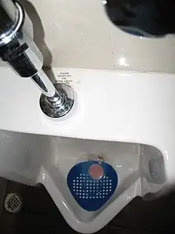 Il existe aussi des blocs désodorisants spéciaux pour urinoir, nommés pastilles pour urinoirs. Le but de ces blocs est de désinfecter et désodoriser les urinoirs. Placés au-dessus du drain pour urinoir, ils s'évaporent lentement au contact de l'air. Comme ils ne se dissolvent pas dans l'eau, ils ne peuvent pas désodoriser l'eau de rinçage et l'urine. Ils sont généralement cylindriques - environ huit centimètres de diamètre, deux centimètres d'épaisseur et pèsent environ une centaine de grammes à l'état neuf. Ils sont généralement de couleur rose, mais d'autres couleurs, telles que le vert, bleu et blanc, sont observées. Les produits chimiques qui composent la pastille pour urinoir peuvent varier. La base est généralement pur paradichlorobenzène ou naphtalène. Le bloc désodorisant pour urinoir contient un composé parfumant, comme la cerise et ses composés d'ammonium quaternaire. Chaque fois que l'urinoir est utilisé, le bloc distribue des agents nettoyants, particulièrement formulés pour entretenir le système de drainage, offrant une salle sans odeur et plus propre.
