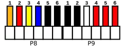 - Gris/Vert/Brun : câbles de contrôle (respectivement : Alimentation OK, ordinateur démarré, 3,3 V de référence).