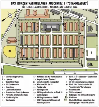 C'est dans les caves de ce Block que fut testé pour la première fois, le , le Zyklon B sur des détenus soviétiques. Rudolf Höß, le commandant d'Auschwitz, jugea le procédé plus efficace que le monoxyde de carbone produit par les gaz d'échappement d'un moteur de char russe[7] en usage dans les camps d'extermination de l'opération Reinhard et l'adopta pour le génocide des Juifs et des Tziganes à Auschwitz[1].