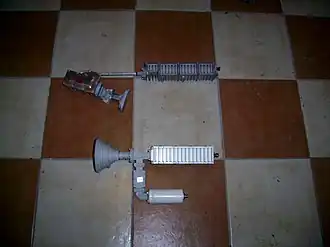 Un BUC est assemblé avec le LNB en association avec un OMT, au foyer situé en face du réflecteur parabolique.