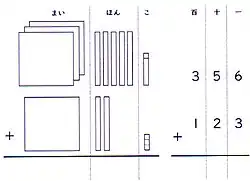 Mais assez rapidement ses successeurs voient l'utilité des blocs pour manipuler des additions et des soustractions à plusieurs chiffres.
