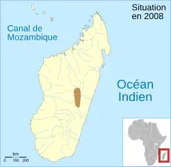 Cette espèce est endémique de Madagascar. Elle se rencontre entre 1 000 et 1 600 m d'altitude du volcan d'Ankaratra à la commune d'Antoetra[2].