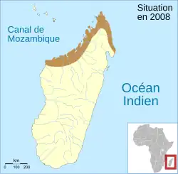 Cette espèce est endémique de Madagascar. Elle se rencontre du niveau de la mer jusqu'à 800 m d'altitude dans le Nord d'île[1],[2].