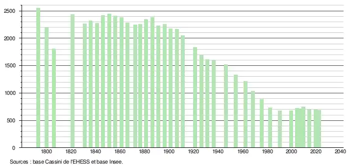 - ↑ Fiches Insee - Populations de référence de la commune pour les années 2006, 2007, 2008, 2009, 2010, 2011, 2012, 2013, 2014, 2015, 2016, 2017, 2018, 2019, 2020, 2021 et 2022.