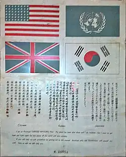 - (en) Cet article est partiellement ou en totalité issu de l’article de Wikipédia en anglais intitulé « Blood chit » (voir la liste des auteurs).