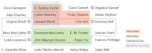Les arts étaient représentés par les peintres Vanessa Bell, Duncan Grant et Dora Carrington, ainsi que Roger Fry, ou encore le musicien Saxon Sydney-Turner.