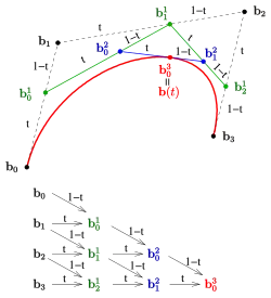Pour une courbe de Bézier cubique avec les points de contrôle , l'osculante au nœud est définie par les points de contrôle de Bézier suivants: .