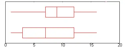 - pour la boîte inférieure : Q1 = 3, M = 7, Q3 = 12, ,