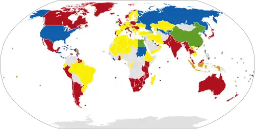 Chaque pays possède sa propre couleur concernant les boites aux lettres publiques et incluent :