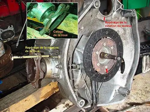 Il est possible de faire la même opération en ne levant qu'une seule roue. Dans ce cas le différentiel fait tourner la roue 2 fois plus : il faut alors diviser le nombre de tours de manivelle par 2, ou opérer la mesure pour atteindre 2 tours de roue.