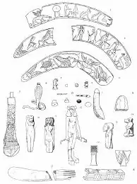 - ↑ « Statuaire - E13405, H 3,17 cm, L 7,62 cm, L 1,91 cm collection Penn Museum. »