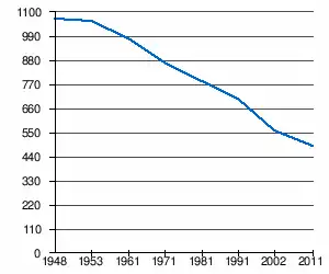 | 1 067 | 1 061 | 975 | 865 | 783 | 702 | 559[2] | 485[1] |