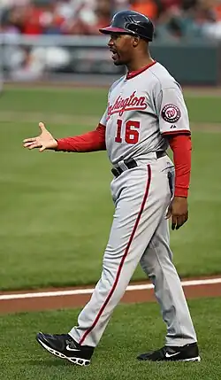 - ↑ (en) Nationals third base coach Bo Porter is working on bringing Nyjer Morgan, others up to speed, Adam Kilgore, Washington Post, 4 mars 2011.