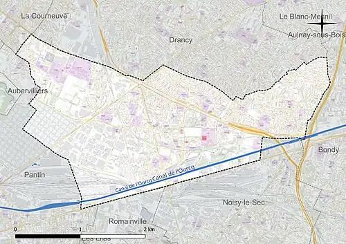 La commune est tangentée au sud par le canal de l'Ourcq.