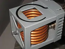 Les bobines à noyau ferromagnétique ou à noyau de fer utilisent un noyau magnétique constitué d'un matériau ferromagnétique ou ferrimagnétique tel que le fer ou la ferrite pour augmenter l'inductance. Un noyau magnétique peut augmenter l'inductance d'une bobine par un facteur de plusieurs milliers, en augmentant le champ magnétique grâce à sa perméabilité magnétique plus élevée. Cependant, les propriétés magnétiques du matériau du noyau provoquent plusieurs effets secondaires qui modifient le comportement de l'inductance et nécessitent une construction spéciale :