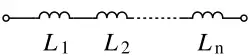 Schéma de plusieurs inductances, connectées bout à bout (en série), avec la même quantité de courant passant à travers chacune d'entre elles.