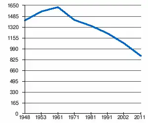 | 1 424 | 1 558 | 1 623 | 1 425 | 1 340 | 1 226 | 1 074[2] | 880[1] |