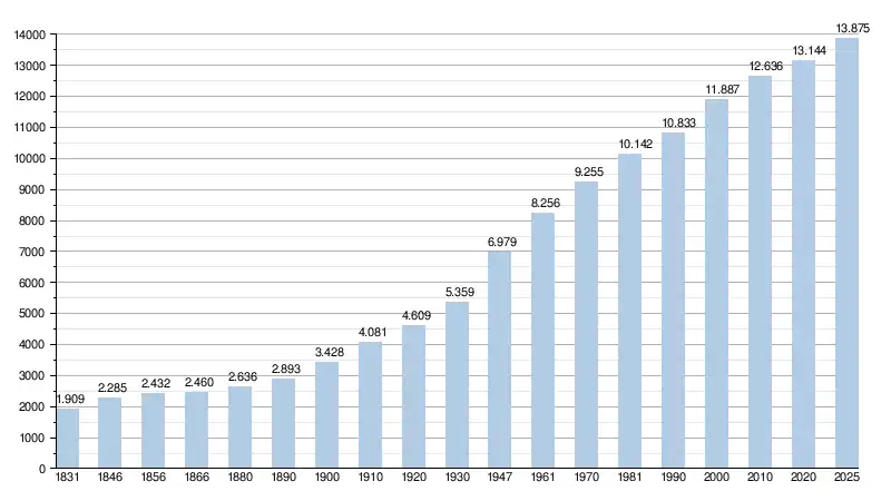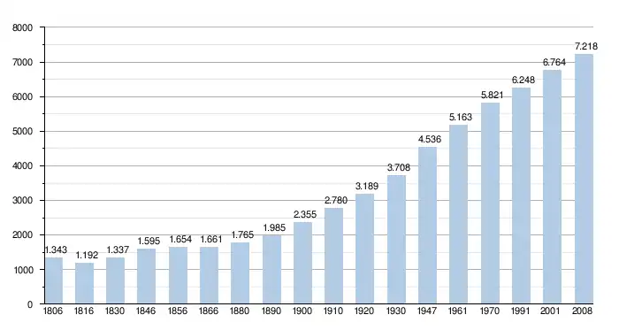 - Source : DGS - Remarque: 1831 jusqu'à 1981=recensement; depuis 1990=nombre d'habitants chaque 1er janvier[3]