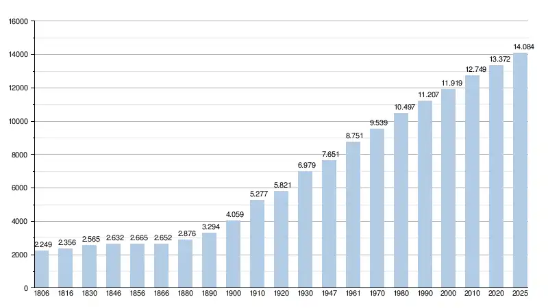 - Source : DGS - Remarque: 1806 jusqu'à 1981=recensement; depuis 1990=nombre d'habitants chaque 1er janvier[3]