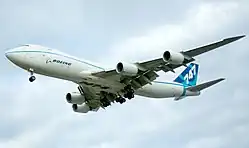 Le Boeing 747-8 est un avion de ligne à réaction gros-porteur développé par Boeing Commercial Airplanes. Officiellement annoncé en 2005, le 747-8 est la quatrième génération de versions du Boeing 747, avec un fuselage allongé, une voilure redessinée et des performances supérieures à celles du 747-400. Le 747-8 est la plus grande version du 747, le plus grand avion commercial construit aux États-Unis et le plus long avion à passagers du monde[4].