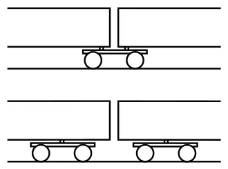 Comme il est expliqué plus haut, le boggie Jacobs se caractérise par les quatre appuis-caisse permettant à deux caisses adjacentes d'être supportées par un seul boggie.