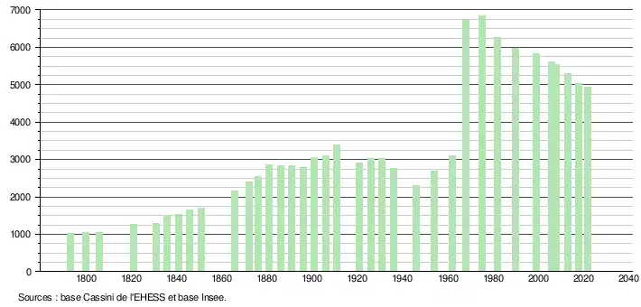 - ↑ Population municipale de référence en vigueur au 1er janvier 2025, millésimée 2022, définie dans les limites territoriales en vigueur au 1er janvier 2024, date de référence statistique : 1er janvier 2022.