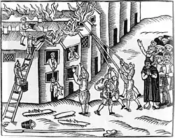 En mai 1723, un incendie détruisit 15 maisons et 16 autres dans les 3 semaines qui suivirent. Comme ces incendies avaient lieu en plein jour, il était évident qu'un pyromane sévissait. Le mayeur de la ville mit sur pied une compagnie de 20 hommes chargés de surveiller les rues nuit et jour. On organisa même une procession.