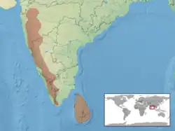 Cette espèce se rencontre en Inde, dans l’État de Maharashtra et au Sri Lanka[1].