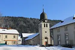 Bois-d'Amont possède l'une des seules églises avec clocher comtois (dit clocher à dôme à impériale) qui soit totalement cylindrique, alors que les autres clochers comtois sont à quatre faces[20] C'est aussi le cas de La chapelle Saint-Léger de La Cluse-et-Mijoux.
