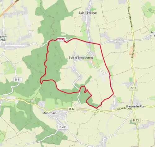 - ↑ « Orthodromie entre Bois-d'Ennebourg et Boos », sur fr.distance.to (consulté le ).