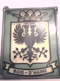 La commune de Bois d'Haine possédait des armoiries, faisait usage d'un sceau « à un écu, à une aigle impériale timbrée d'une couronne royale ». Ayant comme légende inscrite « Eschevins Bois d'Haine » dont les armoiries étaient les mêmes que celles du Saint Empire germanique qui était « d'or à l'aigle bicéphale de sable »