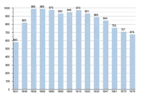 - Sources:INS, Rem:1831 jusqu'en 1970=recensements, 1976= nombre d'habitants au 31 décembre