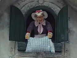 Mis en place en , la scène extérieure représentait le Petit Chaperon rouge accroupi dans un parterre de fleurs, épiée par le loup caché derrière un tronc d'arbre. La scène est remplacée en par la construction de la maison de la grand-mère, avec le loup dans le lit de celle-ci et le Petit Chaperon rouge posté devant la porte, faisant sonner la cloche de la porte d'entrée. Krakeeltje, le corbeau apprivoisé de la grand-mère, perché sur le perchoir de sa cabane, tente d'avertir le Petit Chaperon rouge du danger qui la guette à l'intérieur de la maison si elle y entre en se penchant vers l'avant et en croassant. Tous trois sont des animatroniques. Le Petit Chaperon rouge de 1953 sert dorénavant de panneau indiquant le lieu de la chaumière. Le personnage du Petit Chaperon Rouge est remplacé en 1993 et 2004. L'intérieur de la maison n'est pas accessible, mais le loup est visible par la fenêtre.