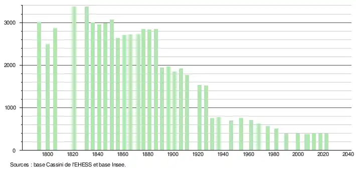 - ↑ Fiches Insee - Populations de référence de la commune pour les années 2006, 2007, 2008, 2009, 2010, 2011, 2012, 2013, 2014, 2015, 2016, 2017, 2018, 2019, 2020, 2021 et 2022.
