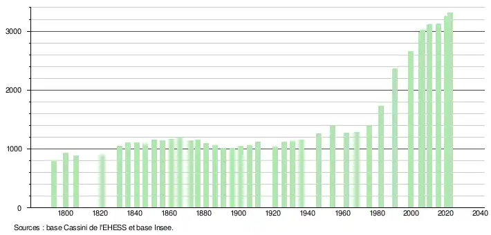Au dernier recensement de 2022, la commune comptait 3 313 habitants.