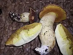 Les Cèpes (B. edulis, B. aereus, B. pinophilus, B. aestivalis), au chapeau non ou peu cabossé selon l'espèce, aux pores jaunes uniquement à maturité, blancs au début, au pied orné d'un réseau et sans odeur d'iode. Comestibles réputés.