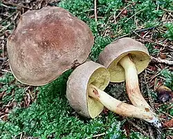 Le Bolet parasite (Pseudoboletus parasiticus): Espèce peu commune. Seul, une fois cueilli, il est extrêmement ressemblant au Bolet subtomenteux, cependant son milieu de pousse sur les Sclérodermes qu'il parasite ne permet pas d'erreur. Sans intérêt alimentaire.
