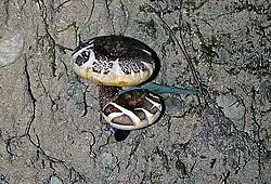 - ↑ 和名(nom japonais)、ou 日本の学名(nom scientifique japonais), est le nom japonais standard, normalisé, unique pour chaque taxon. Il s'écrit toujours en katakana (phonétique japonaise). Bien qu'il ne comporte morphologiquement qu'un seul mot, celui-ci est souvent composé de deux, voire trois, mots accolés sans espaces, à la manière de certains noms latins (par ex. Paralepistopsis).
