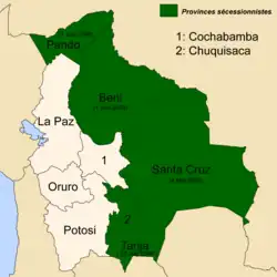 - ↑ Daniel Dory, « Polarisation politique et fractures territoriales en Bolivie », Hérodote, no 123, 4e trimestre 2006, p. 82 (lire en ligne, consulté le ).